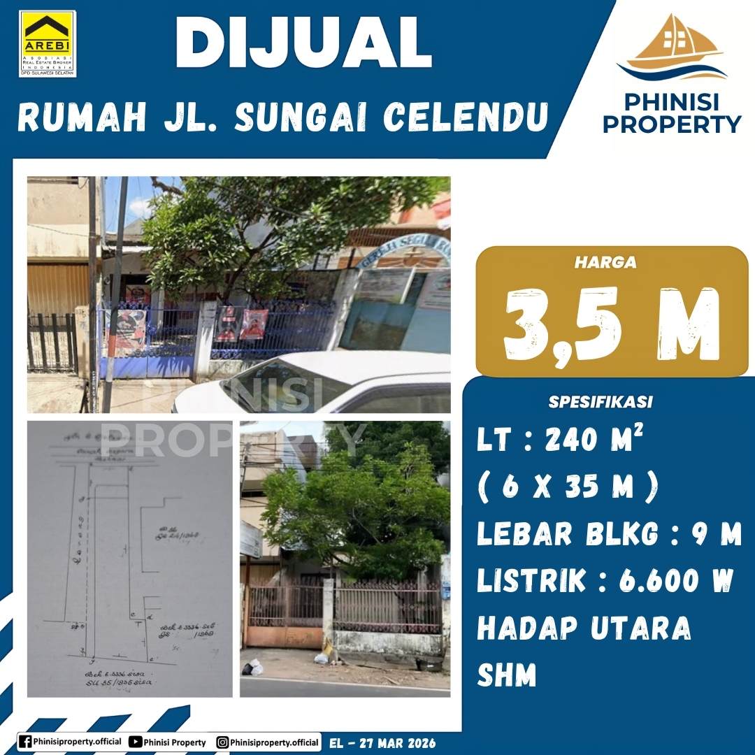 Dijual Rumah Jl. Sungai Celendu - Makassar, Sulawesi Selatan, Sulawesi, Indonesia
