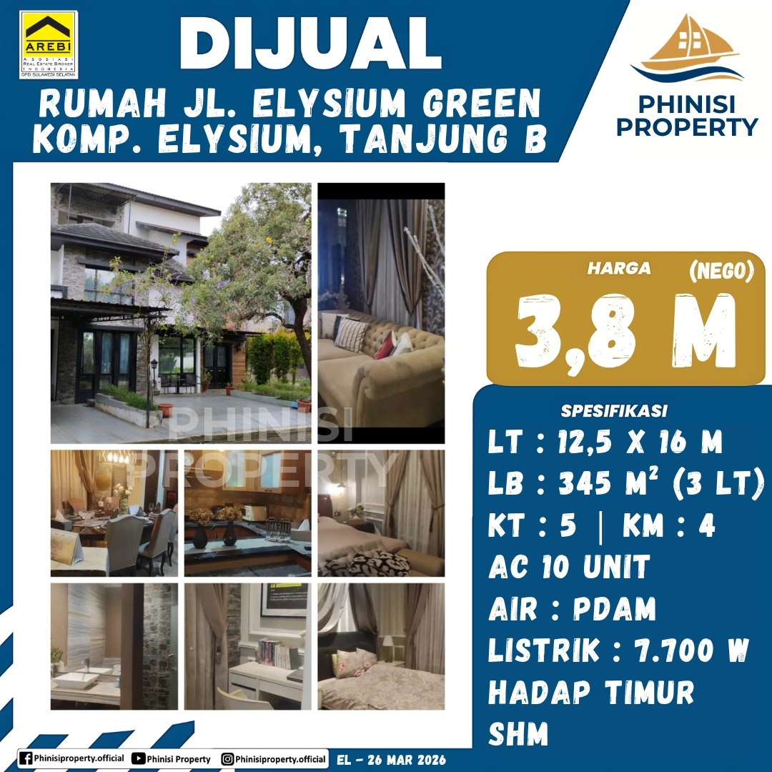 Dijual Rumah Kompleks Ellysium Jl. Elysium Green, Tanjung Bunga - Perumahan The Elysium, Tanjung Merdeka, Tamalate, Makassar, Sulawesi Selatan, Sulawesi, Indonesia