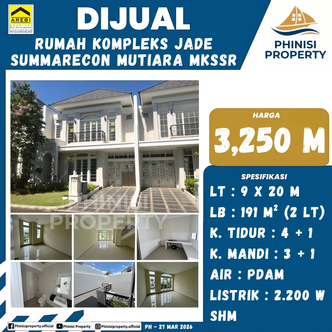 Dijual Rumah Kompleks Jade Summarecon Mutiara Makasar - Jalan Jade, Summarecon Mutiara, Bulurokeng, Biringkanaya, Makassar, Sulawesi Selatan, Sulawesi, 90155, Indonesia