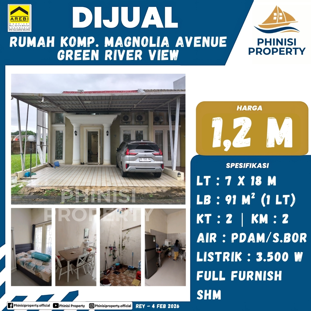 Dijual Rumah Kompleks Magnolia Avenue, Green River View - Perumahan Magnolia Residence, Barombong, Tamalate, Makassar, Sulawesi Selatan, Sulawesi, Indonesia