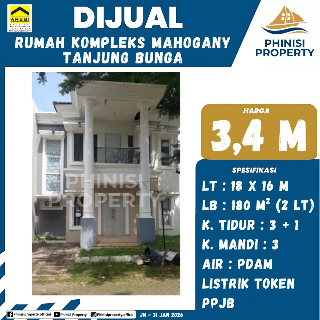 • Alamat: Perumahan The Mahogany Residence, Tanjung Merdeka, Tamalate, Makassar, Sulawesi Selatan, Sulawesi, Indonesia