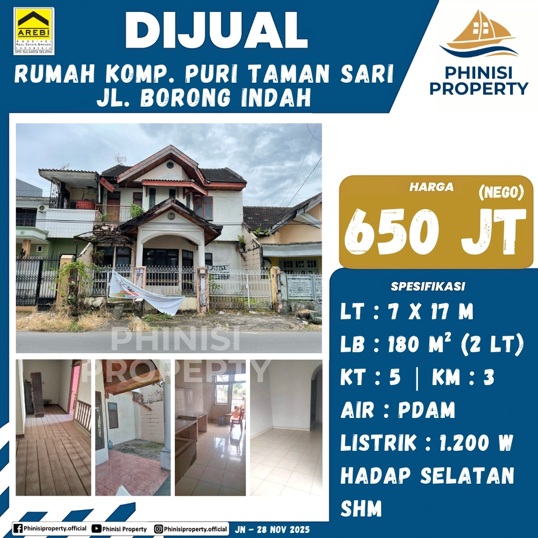 Dijual Rumah Kompleks Puri Taman Sari Jl. Borong Indah - Jalan Borong Indah, Puri Taman Sari, Borong, Manggala, Makassar, Sulawesi Selatan, Sulawesi, 90233, Indonesia