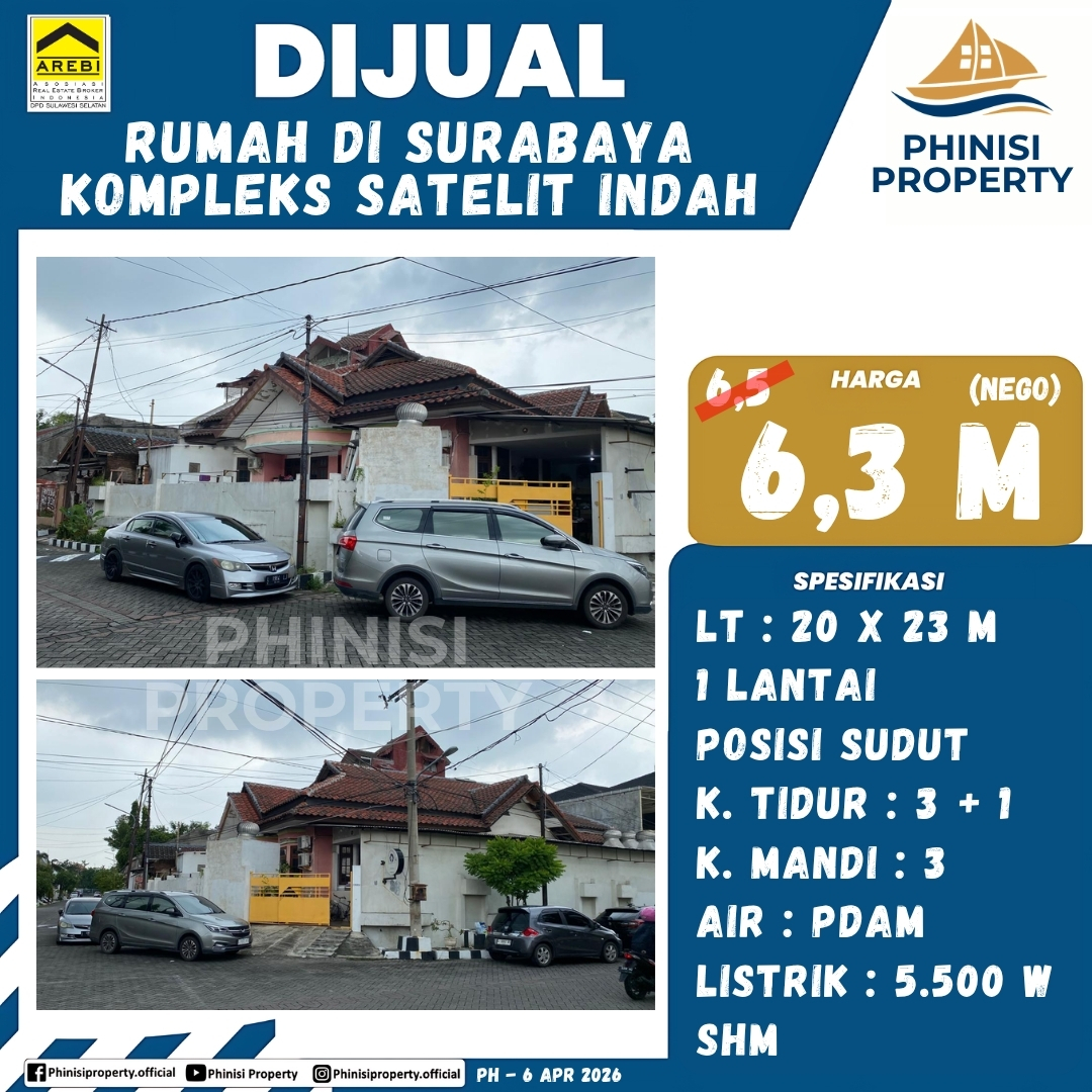 Dijual Rumah Kompleks Satelit Indah, Surabaya - Jalan Raya Satelit Indah, RW 03, Tanjungsari, Sukomanunggal, Surabaya, Jawa, 60187, Indonesia