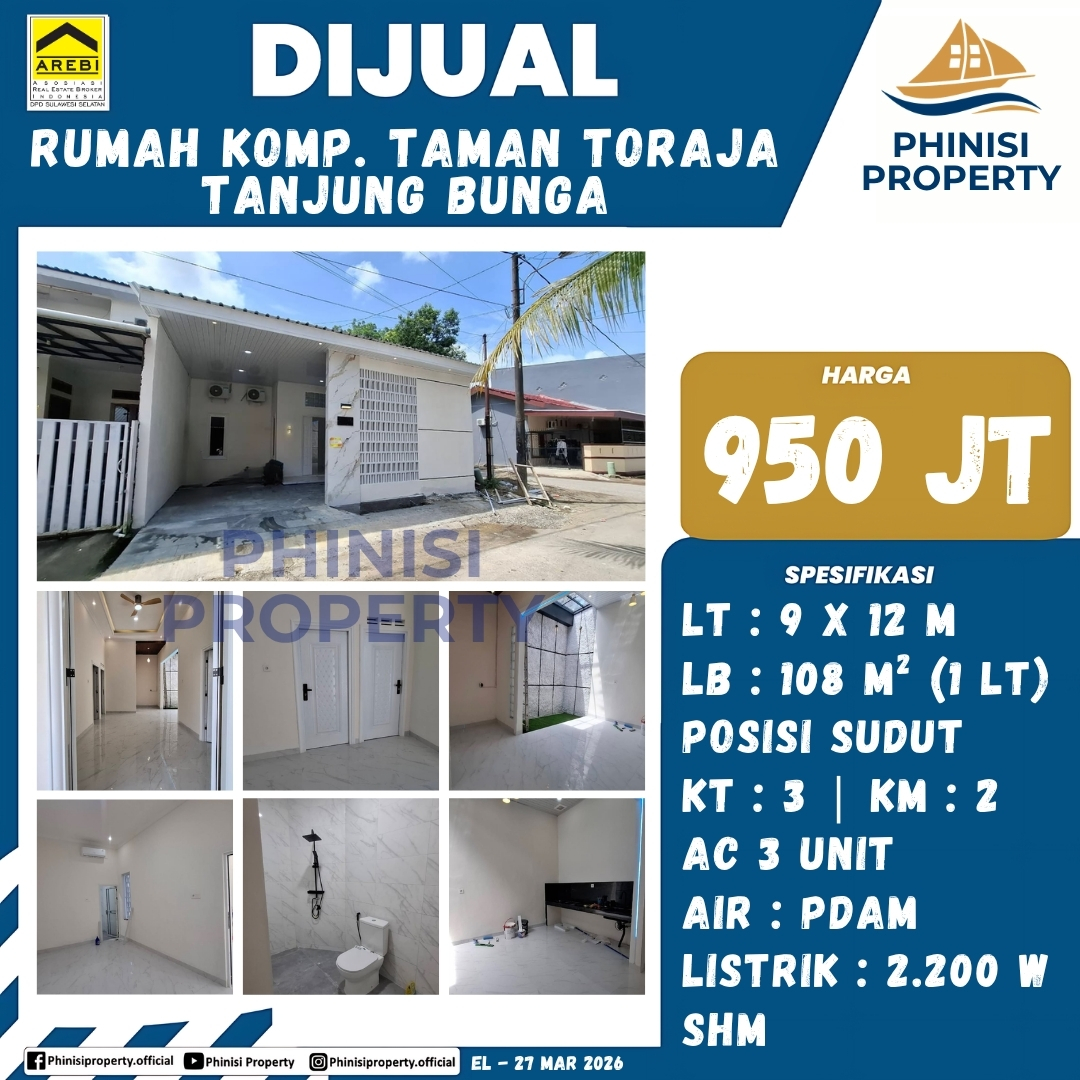 Dijual Rumah Kompleks Taman Toraja Tanjung Bunga - Perumahan Taman Toraja, Tanjung Merdeka, Tamalate, Makassar, Sulawesi Selatan, Sulawesi, Indonesia