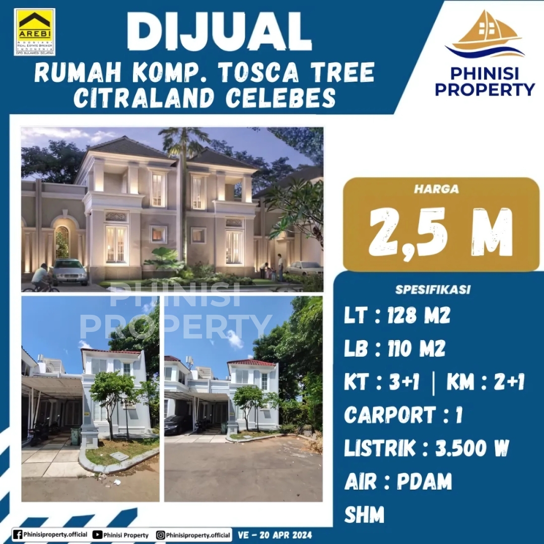 Mencari rumah dijual di kawasan elite Citraland Celebes Makassar? Rumah di Komplek Tosca Tree adalah pilihan ideal untuk keluarga Anda! Dengan luas tanah 128 meter persegi dan luas bangunan 110 meter persegi, rumah ini menawarkan 3 1 kamar tidur dan 2 1 kamar mandi, sangat cocok untuk keluarga modern.