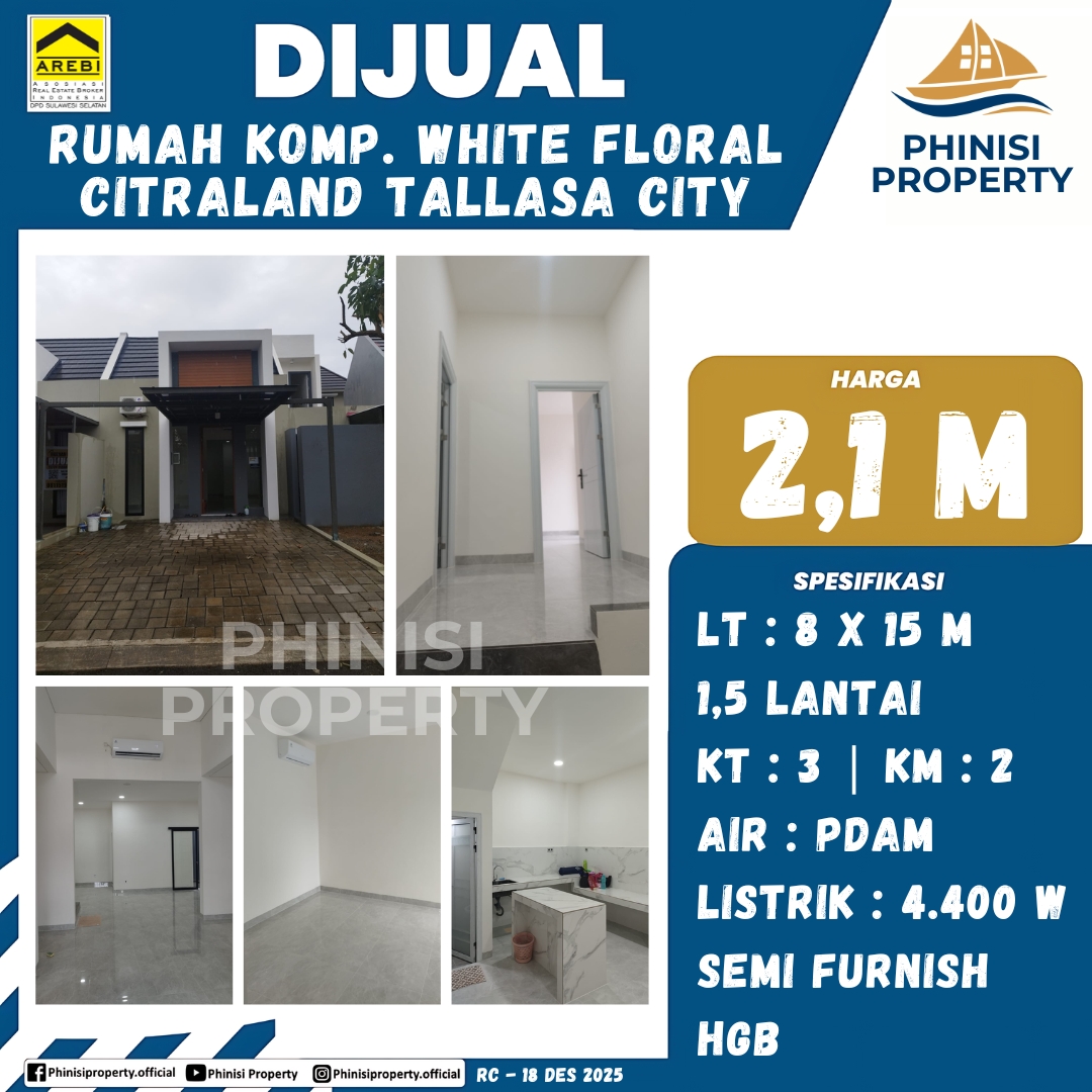 Dijual Rumah Kompleks White Floral Citraland Tallasa City - White Floral, Citraland Tallasa' City, Kapasa Raya, Tamalanrea, Makassar, Sulawesi Selatan, Sulawesi, Indonesia