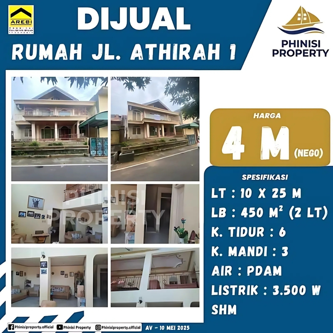 Ingin memiliki hunian idaman di lokasi premium? Dijual segera rumah di Jalan Athirah 1 yang menawarkan kenyamanan dan ruang yang sangat memadai untuk keluarga besar. Dengan luas tanah 10×25 meter dan luas bangunan 450 meter persegi (2 lantai), rumah ini memiliki enam kamar tidur dan tiga kamar mandi, memastikan setiap anggota keluarga mendapatkan privasi dan kenyamanan. Ditambah dengan fasilitas air PDAM dan listrik 3.500 watt, serta status kepemilikan SHM, properti ini siap menjadi tempat tinggal yang sempurna. Jangan lewatkan kesempatan untuk memiliki rumah impian di lokasi strategis.