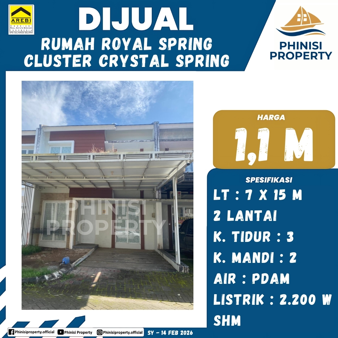 Dijual Rumah Royal Spring Cluster Crystal Spring - Royal Spring, Samata, Somba Opu, Gowa, Sulawesi Selatan, Sulawesi, Indonesia