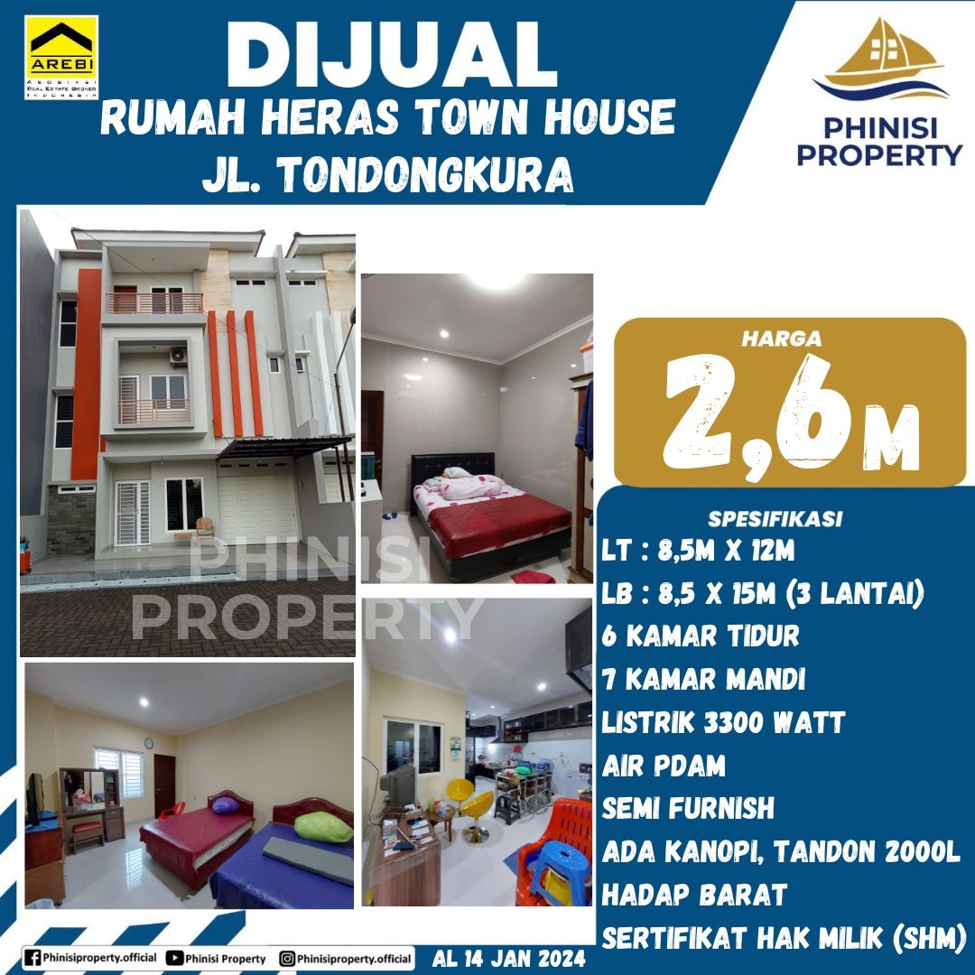 DIJUAL Rumah tengah Kota Heras Town House di Jalan Tondongkura Rumah strategis di kawasan Veteran, cocok untuk tempat tinggal atau usaha rumahan. Terletak di lingkungan yang aman, tertata, dan mudah diakses dari jalan utama.