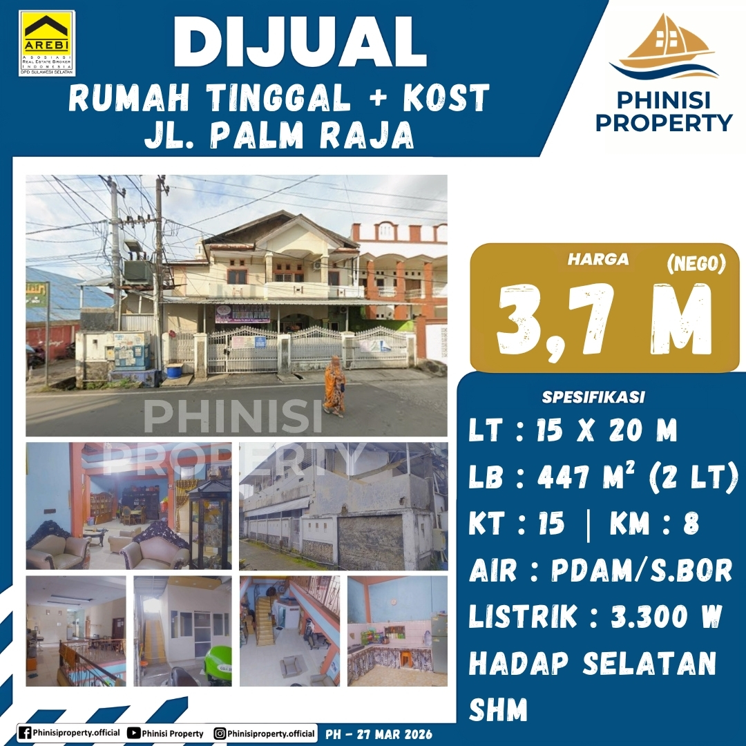 Dijual Rumah Tinggal + Kost Jl. Palm Raja - Jalan Palm Raja, Perumahan Pegawai kantor Gubernur, Kassiʼ-Kassiʼ, Kassi-Kassi, Rappocini, Makassar, Sulawesi Selatan, Sulawesi, 90222, Indonesia