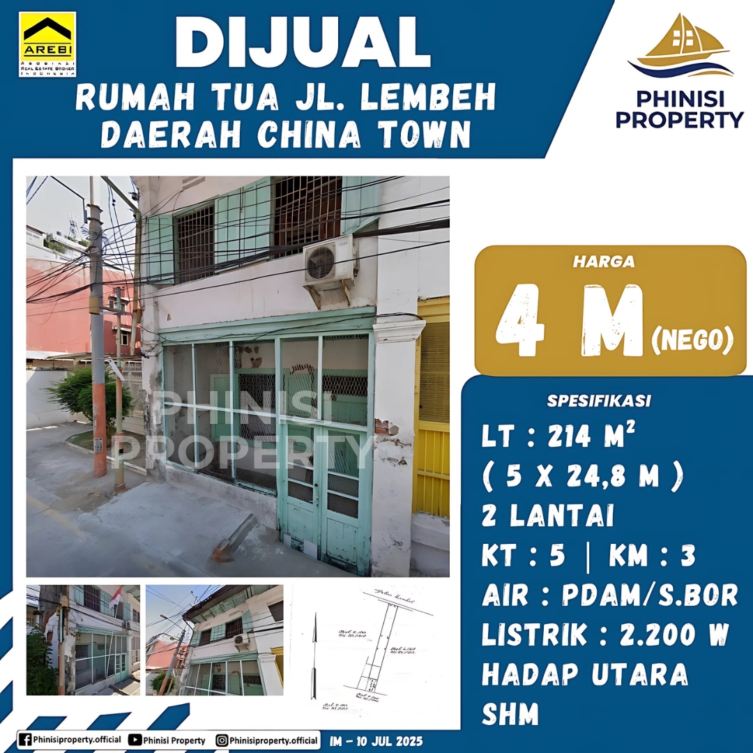 Cari rumah dijual di pusat kota Makassar dengan nilai historis dan potensi pengembangan? Rumah tua di Jalan Lembeh, kawasan Chinatown Makassar, kini tersedia untuk Anda! Dengan luas tanah 214 meter persegi (5×24.8 meter) dan bangunan 2 lantai, properti ini menawarkan 5 kamar tidur dan 3 kamar mandi. Dilengkapi dengan pasokan air PDAM/sumur bor dan daya listrik 2.200 Watt, rumah ini siap untuk direnovasi atau dikembangkan sesuai kebutuhan Anda. Lokasinya yang strategis di daerah Chinatown menjadikan properti ini sangat cocok untuk hunian pribadi, bisnis kuliner, penginapan, atau galeri seni, mengingat karakteristik unik dan daya tarik kawasan tersebut. Rumah ini menghadap Utara dan memiliki Sertifikat Hak Milik (SHM), menjamin legalitas dan keamanan investasi Anda.