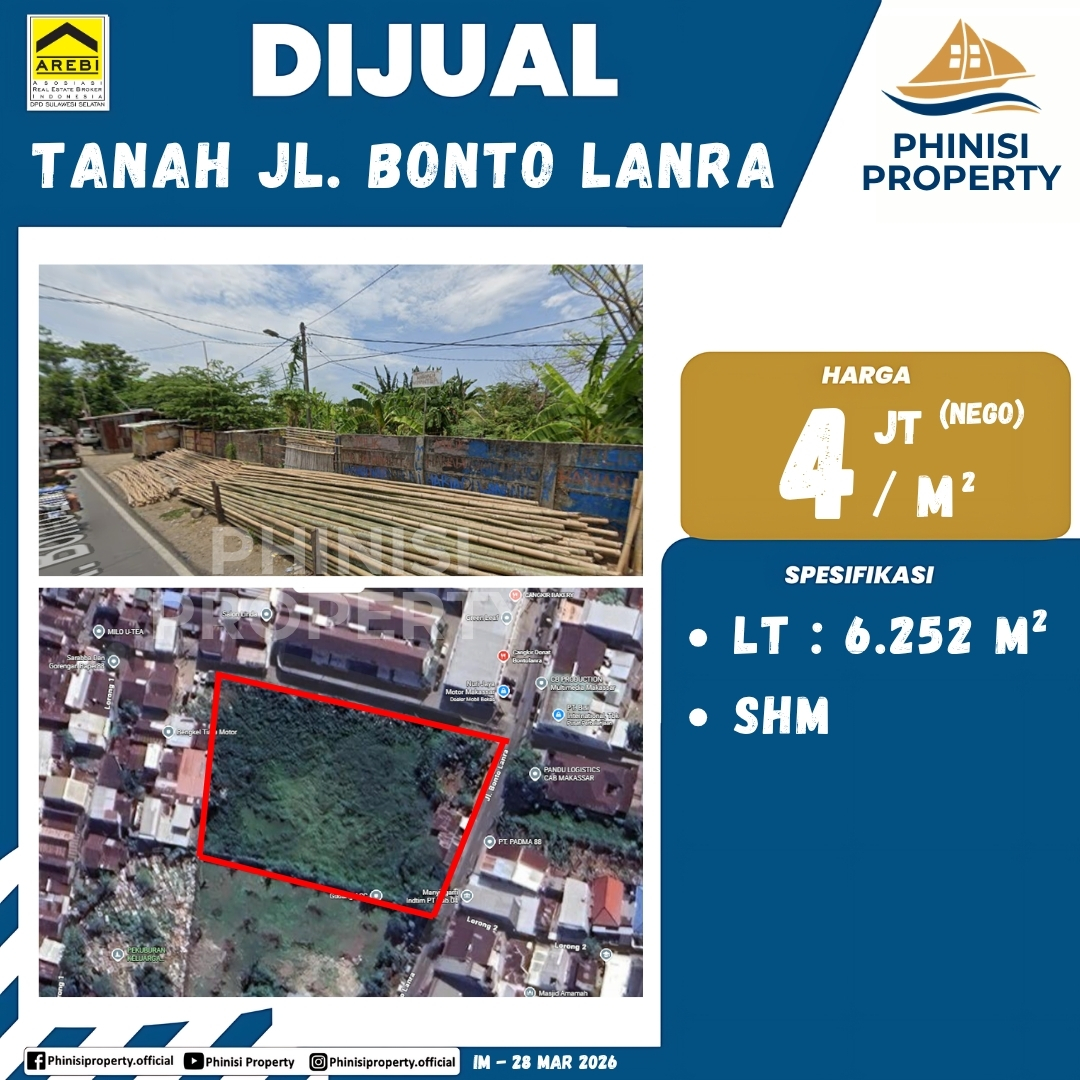 Dijual Tanah Jl. Bonto Lanra - Jalan Bontolanra, Banta-Bantaeng, Rappocini, Makassar, Sulawesi Selatan, Sulawesi, 90132, Indonesia