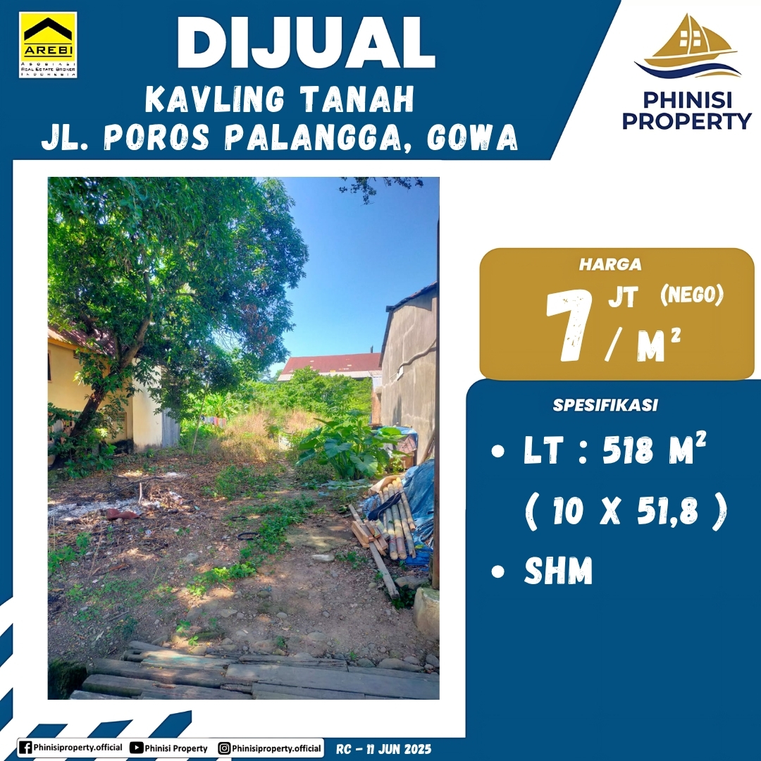 Dijual Tanah Kavling Poros Jalan Pallangga Gowa