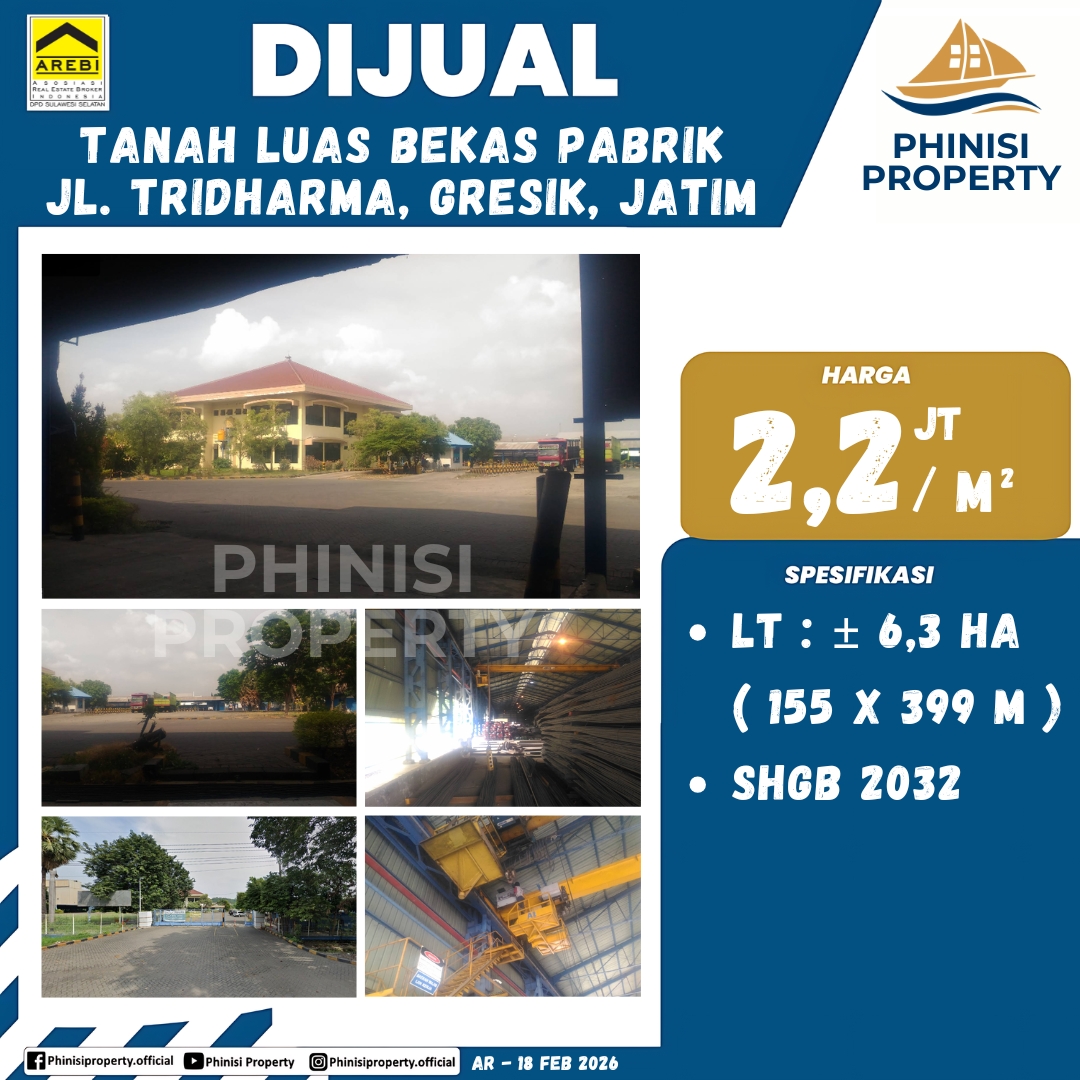 Dijual Tanah Luas Bekas Pabrik Jl. Tridhama, Gresik, Jawa Timur - Jalan Kig Raya Selatan, Kawasan Industri Gresik, Karangturi, Gresik, Jawa Timur, Jawa, 61121, Indonesia