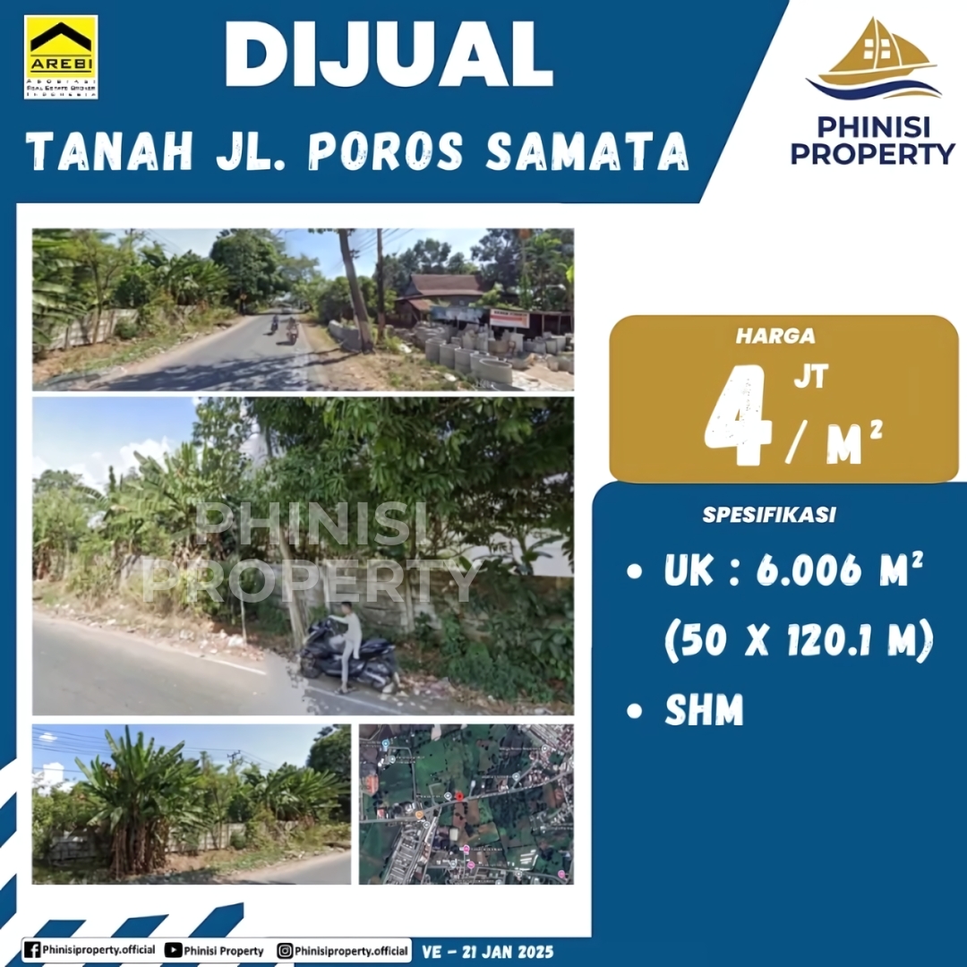 Lokasinya yang berada di Jalan Poros Samata, yang merupakan jalur utama dan terus berkembang, menjamin aksesibilitas tinggi dan visibilitas yang sangat baik. Area ini memiliki potensi pertumbuhan yang pesat, menjadikannya investasi yang sangat menjanjikan. Properti ini memiliki Sertifikat Hak Milik (SHM), memberikan kepastian dan keamanan penuh bagi pembeli.