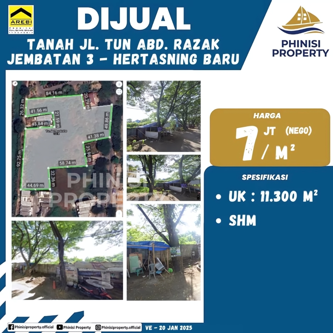 Mencari tanah dijual di lokasi strategis dengan potensi pengembangan yang luar biasa di Gowa? Kavling tanah di Jalan Tun Abdul Razak, tepatnya di area Jembatan 3 - Hertasing Baru, adalah kesempatan investasi jumbo yang tidak boleh Anda lewatkan! Dengan luas tanah masif 11.300 meter persegi, properti ini sangat ideal untuk berbagai proyek pengembangan skala besar, seperti kompleks perumahan, kawasan komersial terpadu, gudang logistik, atau fasilitas industri ringan.