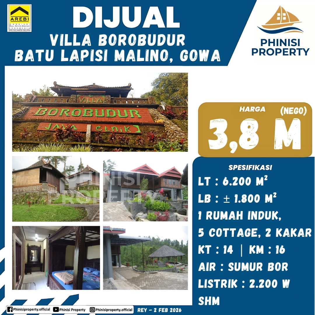 Dijual Villa Borobudur, Batu Lapisi Malino, Gowa - Jalan Poros Sungguminasa - Malino, Malino, Tinggimoncong, Gowa, Sulawesi Selatan, Sulawesi, 92178, Indonesia