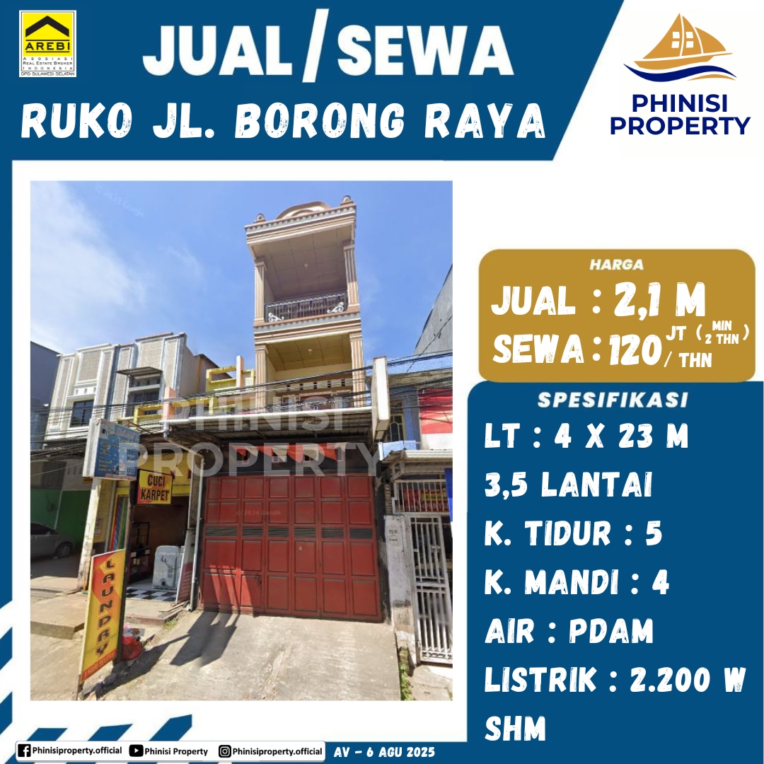 Dijual/Disewa Ruko Jl. Borong Raya - Jalan Borong Raya, Batua, Borong, Manggala, Makassar, Sulawesi Selatan, Sulawesi, 90233, Indonesia