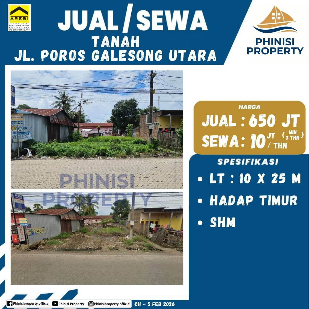 Dijual/Disewa Tanah Murah Jl. Poros Galesong Utara - Galesong Utara, Takalar, Pakkabba, Sulawesi Selatan, Sulawesi, Indonesia