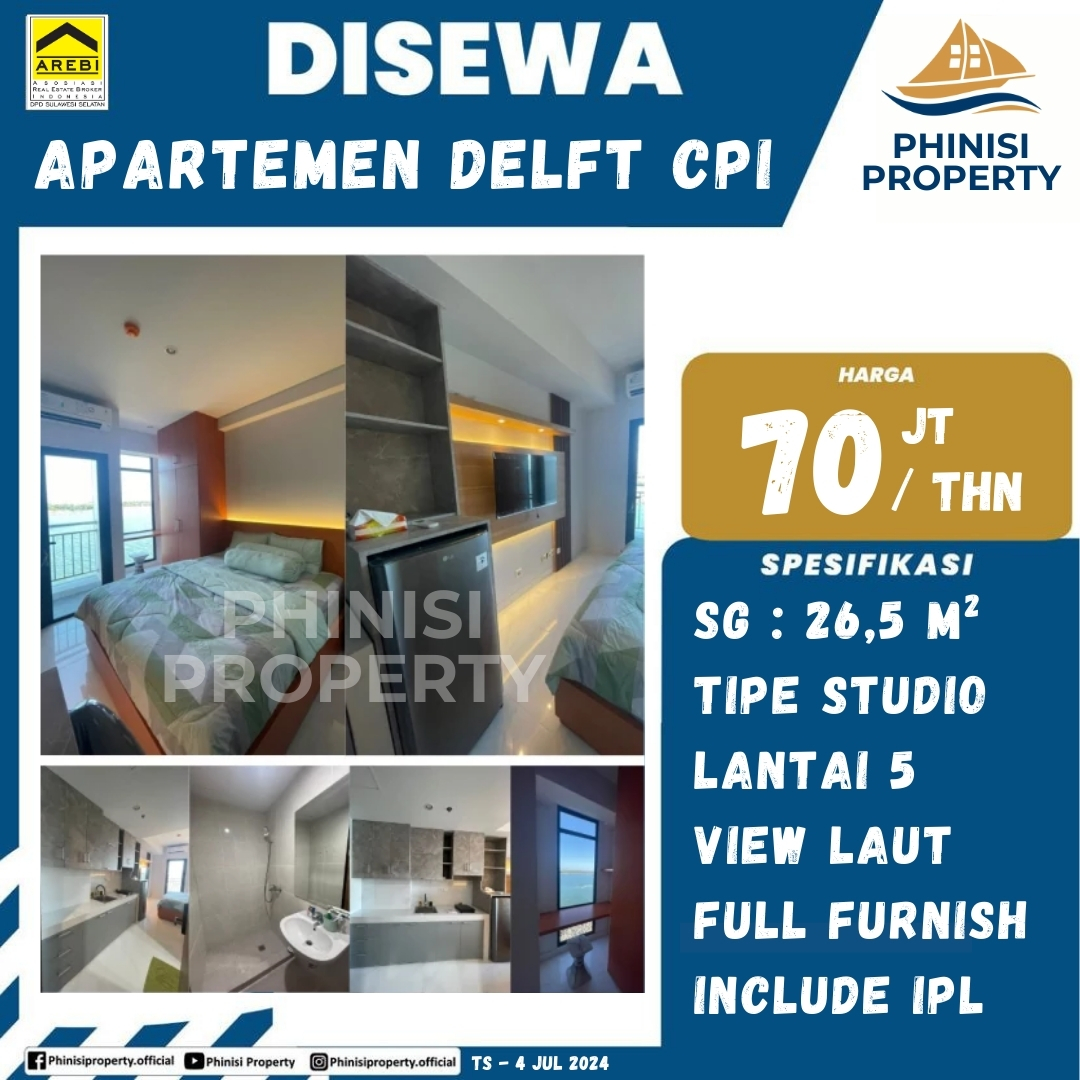 Apartemen tipe studio ini adalah pilihan ideal bagi Anda yang mencari hunian praktis dan modern di Makassar. Dengan luas 26,5 m², apartemen ini menawarkan tata ruang yang efisien dan nyaman. Berlokasi di lantai 5, unit ini memiliki pemandangan laut yang menawan. Apartemen ini disewakan dalam kondisi full furnish, sehingga penyewa dapat langsung menempati tanpa perlu repot membeli perabotan. Dengan daya listrik 2.200 watt dan harga sewa yang sudah termasuk IPL (Iuran Pengelolaan Lingkungan), apartemen ini sangat praktis. Cocok untuk individu atau pasangan yang mencari tempat tinggal dengan kenyamanan dan pemandangan yang indah.
