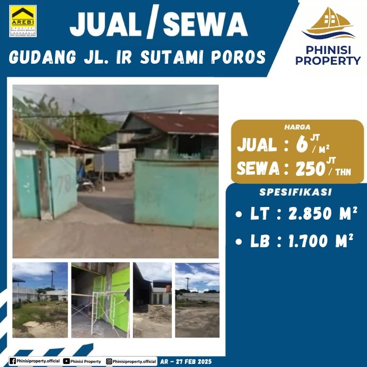 Gudang di Jalan Ir. Sutami Poros: Dijual dan Disewakan untuk Kebutuhan Logistik dan Industri