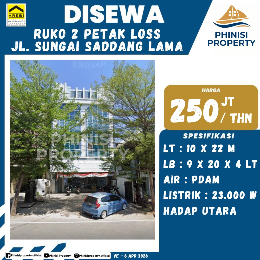 Disewa Ruko 2 Petak Loss Jl. Sungai Saddang Lama - Jalan S. Saddang Lama, Pisang Selatan, Makassar, Sulawesi Selatan, Sulawesi, 90114, Indonesia