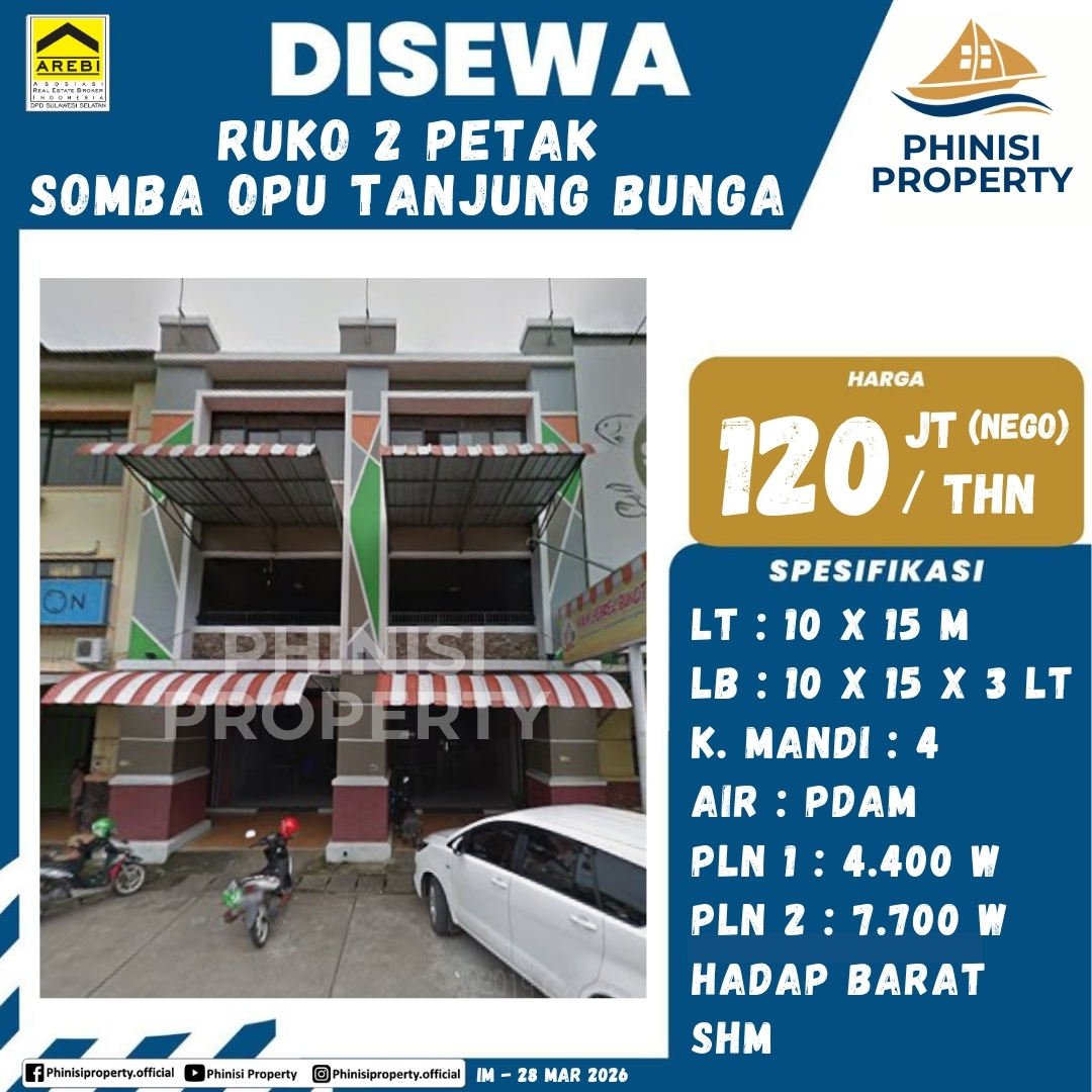 Disewa Ruko 2 Petak Somba Opu Tanjung Bunga - Jalan Metro Tanjung Bunga, Maccini Sombala, Tamalate, Makassar, Sulawesi Selatan, Sulawesi, 90134, Indonesia