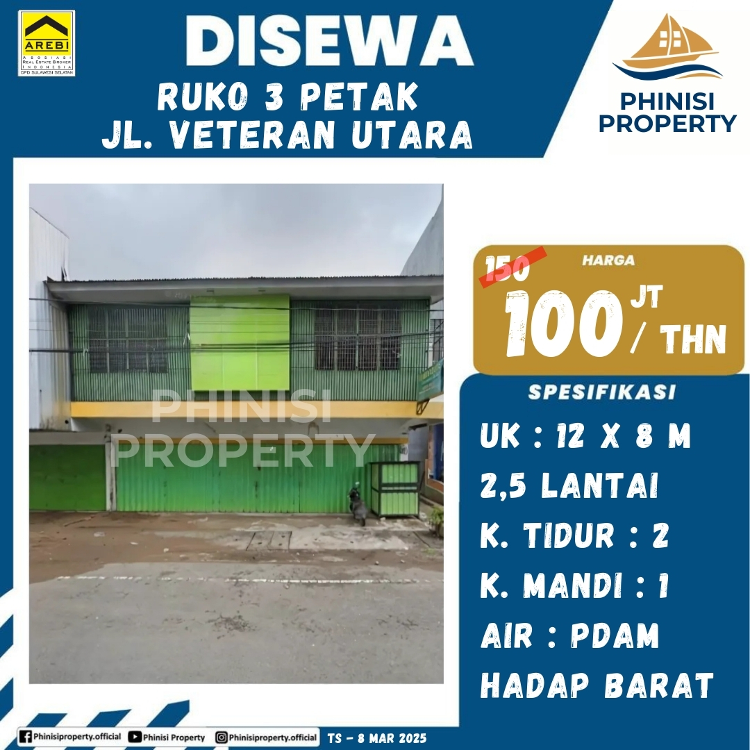 Disewa Ruko 3 Petak di Jl. Veteran Utara