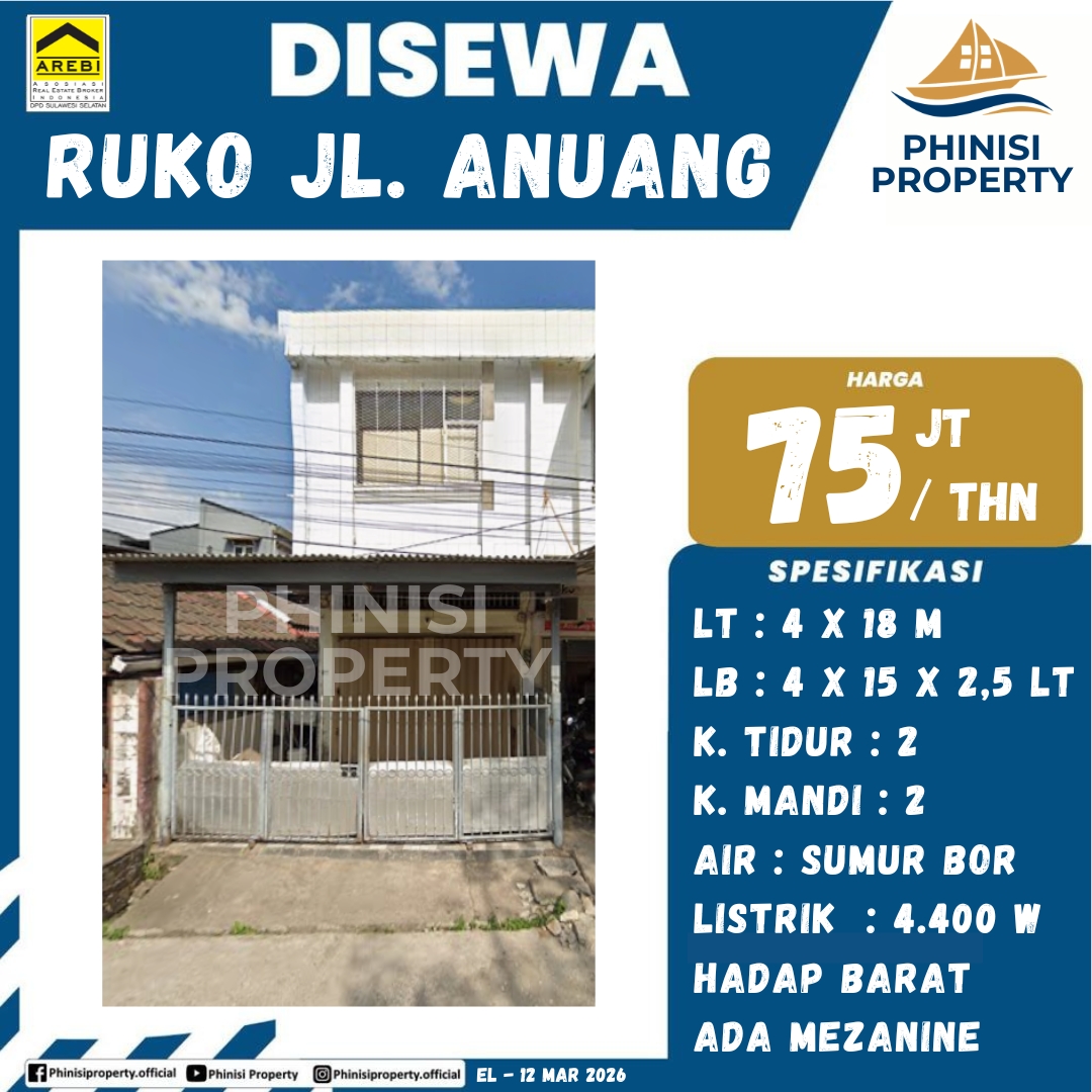 Disewa Ruko Jl. Anuang - Jalan Anuang, Maricaya Selatan, Mamajang, Makassar, Sulawesi Selatan, Sulawesi, 90111, Indonesia