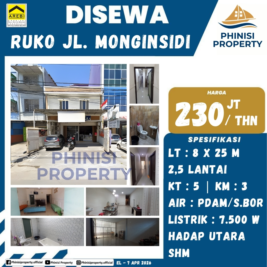 Disewa Ruko Jl. Monginsidi - Jalan Monginsidi, Maricaya Baru, Makassar, Sulawesi Selatan, Sulawesi, 90142, Indonesia