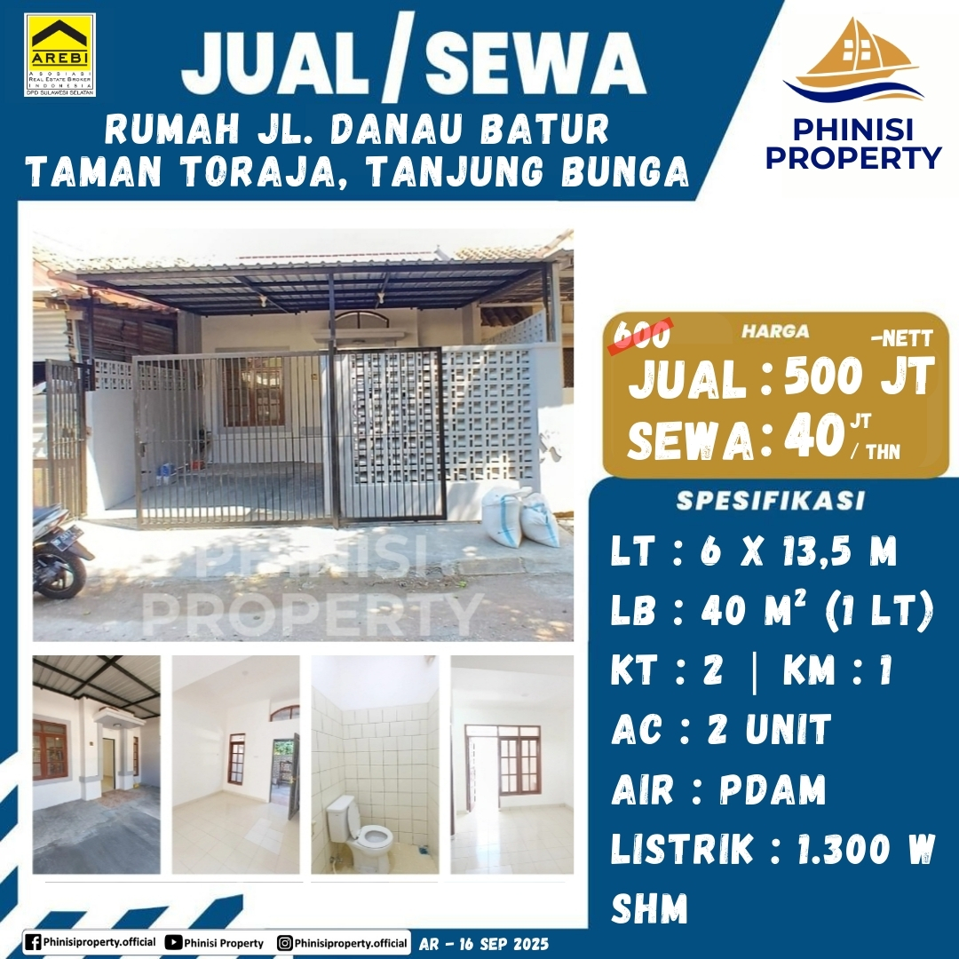 Alamat:Jalan Danau Batur, Perumahan Taman Toraja, Tanjung Merdeka, Tamalate, Makassar, South Sulawesi, Sulawesi, 90225, Indonesia