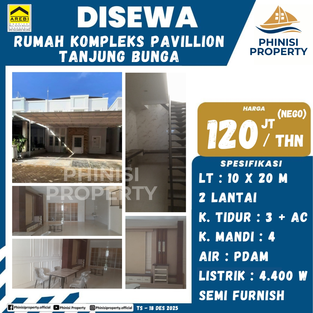 Disewa Rumah Kompleks Pavillion Tanjung Bunga - Perumahan Pavillion, Jalan Metro Tanjung Bunga, Maccini Sombala, Tamalate, Makassar, Sulawesi Selatan, Sulawesi, 90134, Indonesia