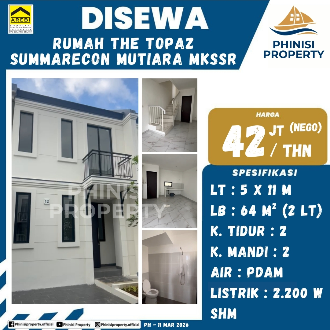 Disewa Rumah The Topaz Summarecon Mutiara Makassar - Jalan Topaz, Summarecon Mutiara, Untia, Biringkanaya, Makassar, Sulawesi Selatan, Sulawesi, 90155, Indonesia