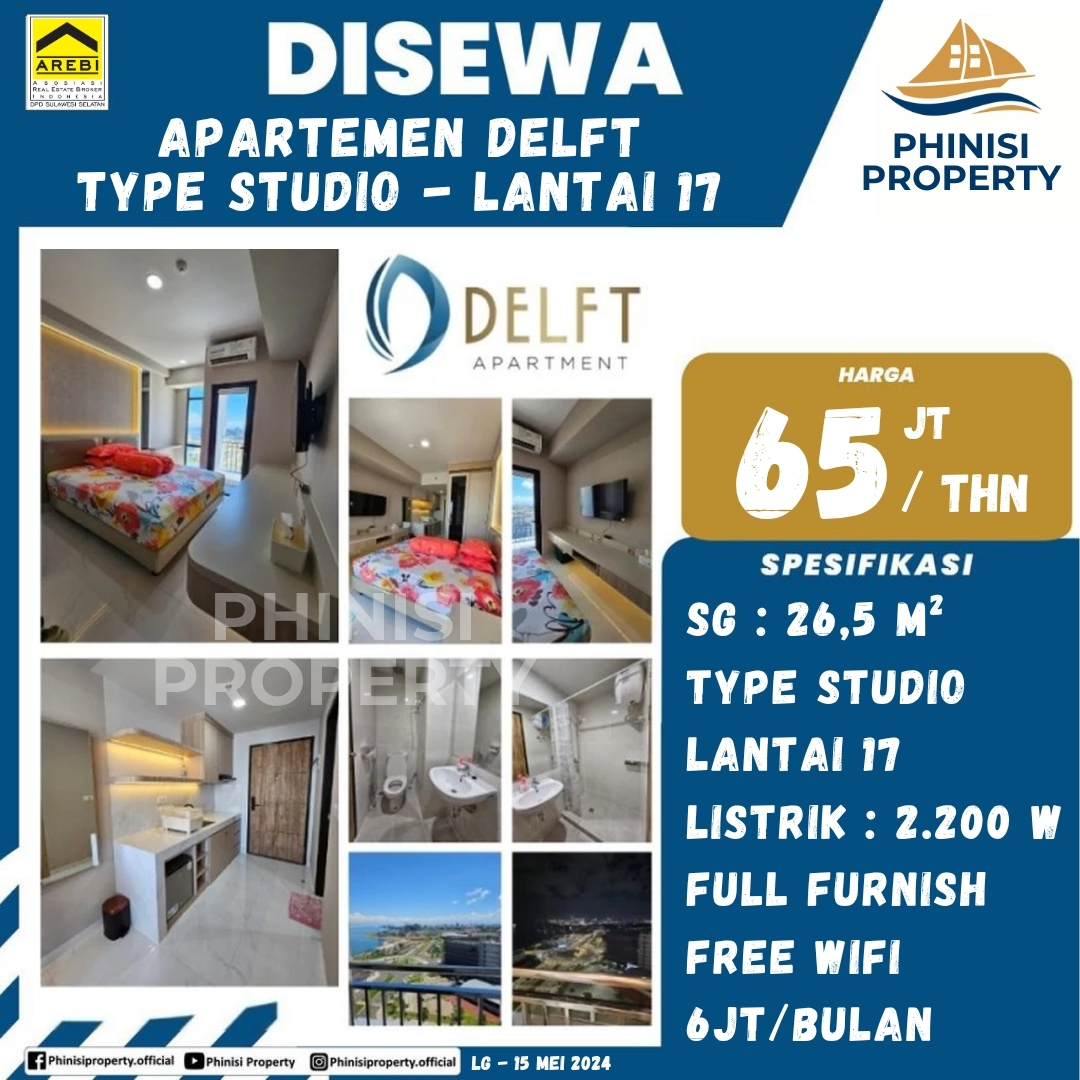 Apartemen Delft Tipe Studio di lantai 17 kini tersedia untuk disewa. Dengan luas 26,5 meter persegi, apartemen ini ideal untuk satu orang atau pasangan yang mencari hunian praktis dan nyaman. Unit ini dilengkapi dengan listrik 2.200 watt dan disewakan dalam kondisi full furnish, sehingga Anda bisa langsung menempatinya tanpa perlu repot. Pemandangan dari lantai 17 menambah nilai plus, menjadikannya pilihan yang sangat menarik.