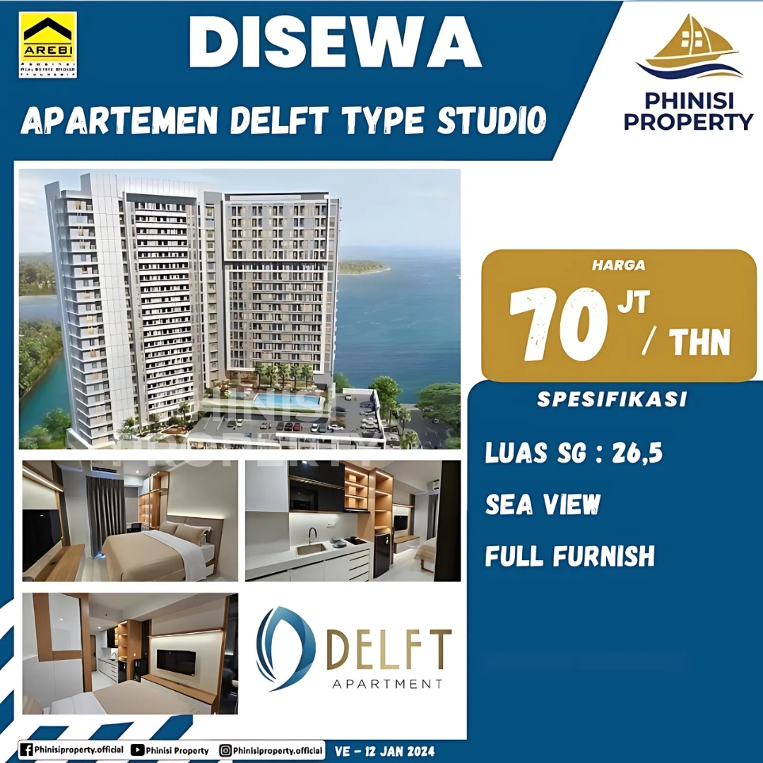 Disewakan Apartemen Delft Type Studio: Sea View, Full Furnish, Hunian Eksklusif di Makassar