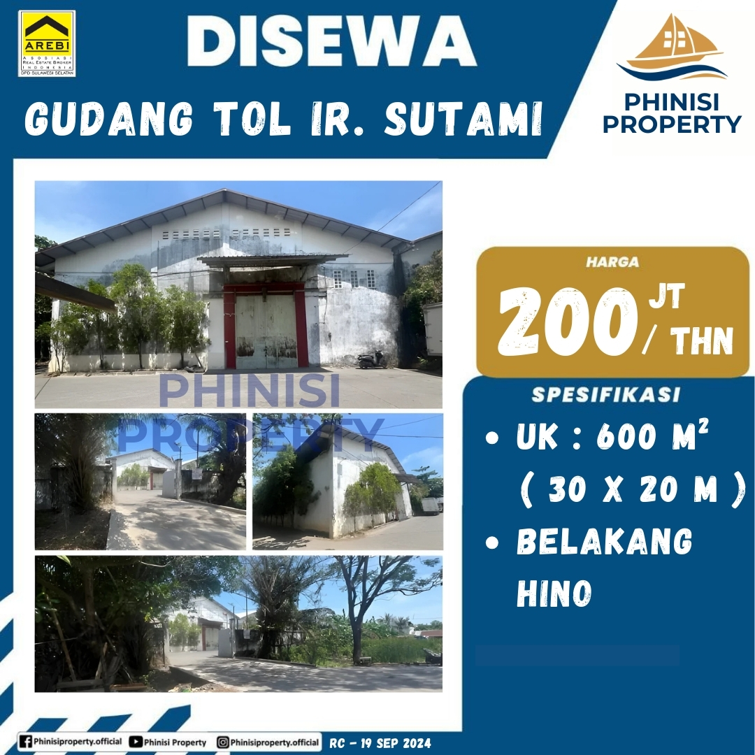 Disewakan gudang di lokasi strategis, Jalan Tol Ir. Sutami, yang ideal untuk kebutuhan logistik dan penyimpanan bisnis Anda. Gudang ini memiliki luas 600 meter persegi, hasil dari perkalian 30 meter dan 20 meter, menawarkan ruang yang luas untuk berbagai keperluan. Berada di lokasi yang mudah diakses, yaitu di belakang Hino, gudang ini menjamin kelancaran distribusi barang. Dengan lokasi yang sangat menguntungkan di area industri, gudang ini menjadi pilihan yang tepat untuk menunjang operasional perusahaan Anda.