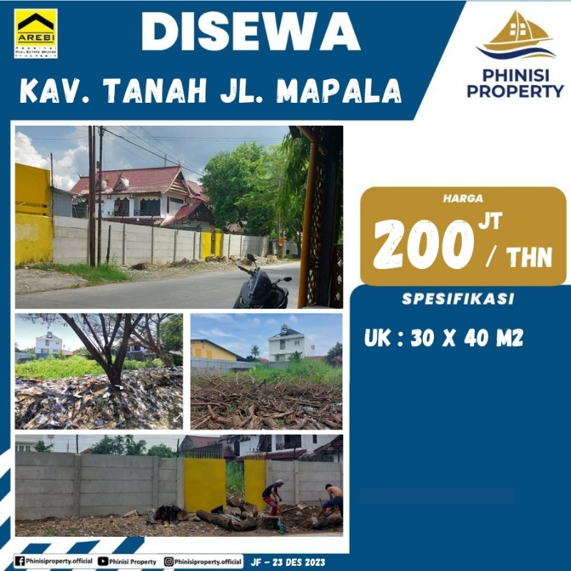 Disewakan segera, kavling tanah yang sangat cocok untuk berbagai kebutuhan, baik untuk dijadikan lahan parkir, gudang, maupun tempat penyimpanan lainnya. Berlokasi di Jalan Mapala, tanah ini menawarkan akses strategis dan fleksibilitas penggunaan. Dengan ukuran 30×40 meter, total luas tanah yang tersedia adalah 1.200 m², memberikan ruang yang sangat luas untuk berbagai keperluan bisnis atau pribadi.