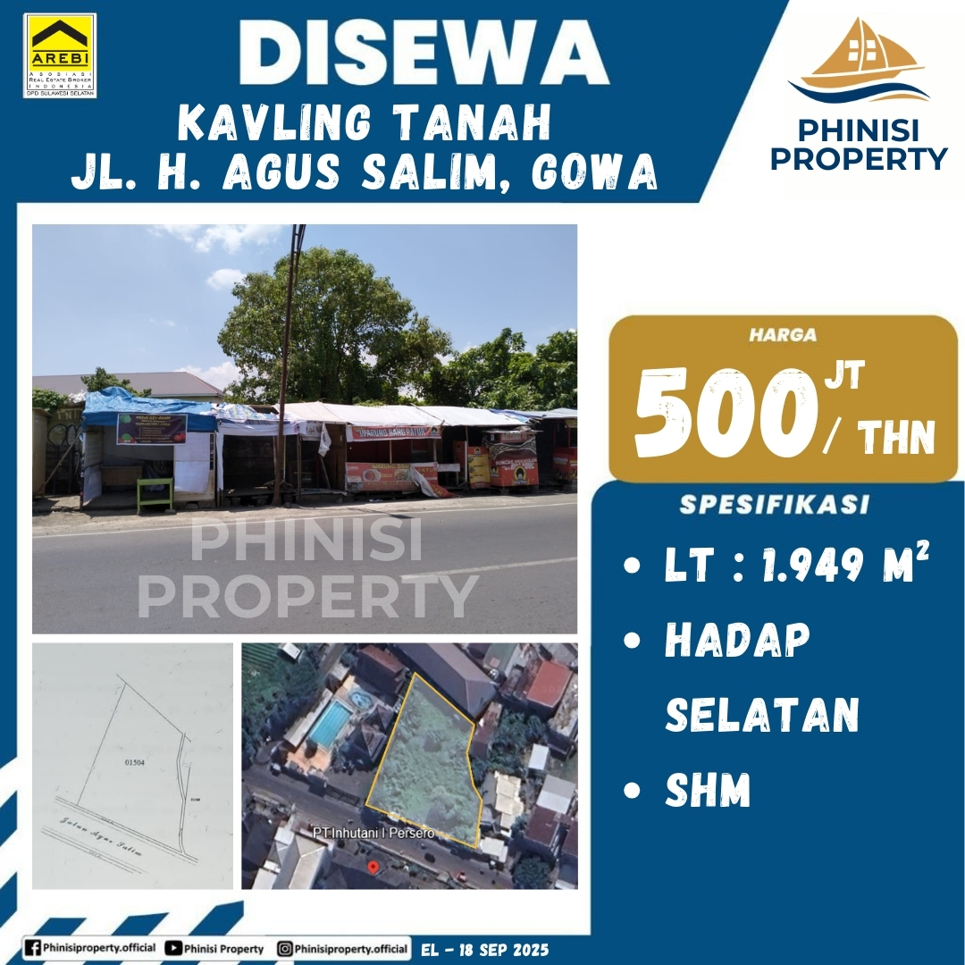 DISEWAKAN KAVLING LUAS DI JALAN H. AGUS SALIM, GOWA
