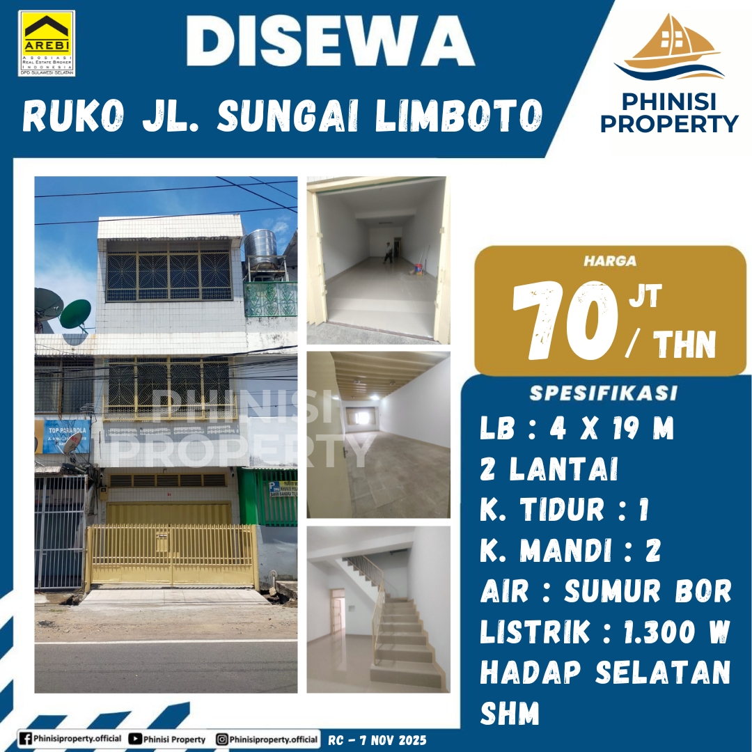 Disewakan ruko 2 lantai sungai limboto