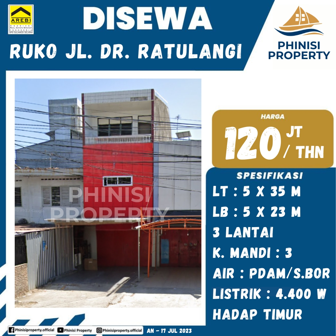 Maksimalkan potensi bisnis Anda dengan ruko yang disewakan di Jalan Dr. Ratulangi. Berlokasi strategis di pusat kota, ruko ini ideal untuk berbagai jenis usaha. Properti ini berdiri di atas lahan seluas 5x35 meter persegi, atau 175 meter persegi, dan luas bangunannya 5x23 meter persegi, setara dengan 115 meter persegi. Bangunan 3 lantai ini menawarkan ruang yang sangat fungsional. Dilengkapi dengan daya listrik 4400 watt dan pasokan air dari PDAM dan sumur bor, ruko ini menjamin kelancaran operasional bisnis Anda. Menghadap ke arah timur, properti ini menawarkan visibilitas yang baik dari jalan utama. Jangan lewatkan kesempatan untuk memiliki tempat usaha di lokasi yang sangat prospektif ini.