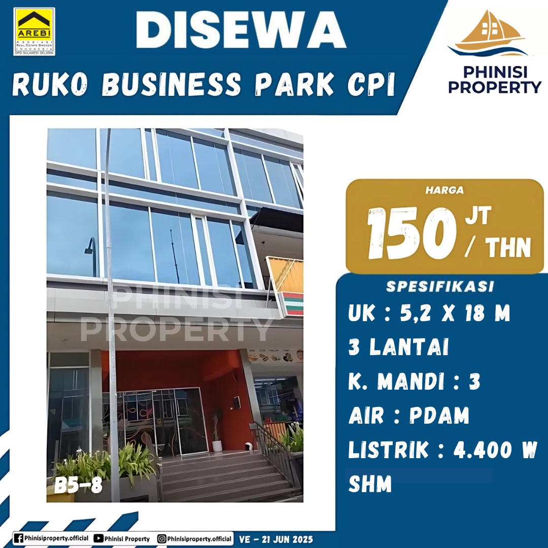 Disewakan Ruko Modern di Ruko Business Park CPI – Pusat Bisnis Premium di Makassar!