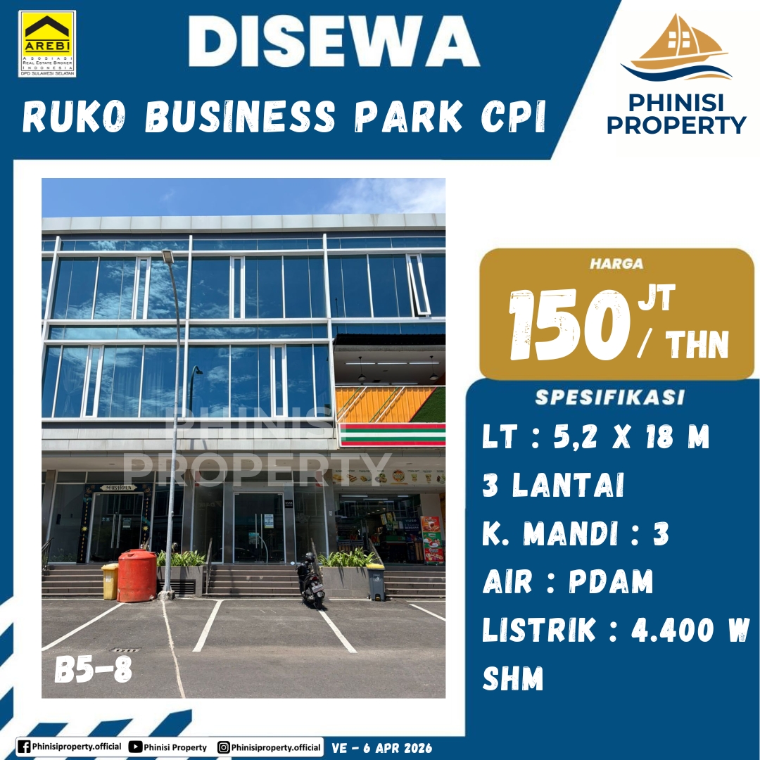 PHINISI PROPERTY dengan bangga mempersembahkan peluang emas bagi Anda yang mencari ruang usaha modern dan strategis: sebuah unit ruko yang tersedia untuk disewakan di Ruko Business Park CPI (Citraland City CPI). Properti ini adalah pilihan sempurna bagi bisnis yang ingin berkembang di lokasi bergengsi dengan fasilitas lengkap dan lingkungan bisnis yang dinamis.