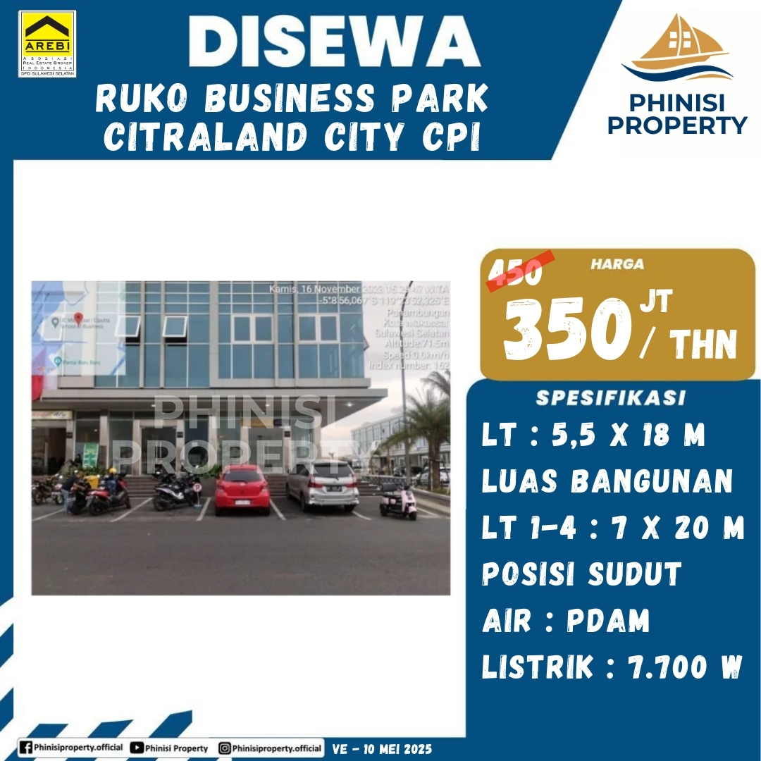 PHINISI PROPERTY dengan bangga mempersembahkan properti komersial yang sangat eksklusif: sebuah unit ruko dengan posisi sudut yang tersedia untuk disewakan di Business Park Citraland City Panakkukang (CPI). Ini adalah kesempatan sempurna bagi Anda yang ingin mendirikan atau mengembangkan bisnis di lokasi paling bergengsi dan strategis di Makassar, dengan keuntungan visibilitas dan aksesibilitas dari posisi sudut!
