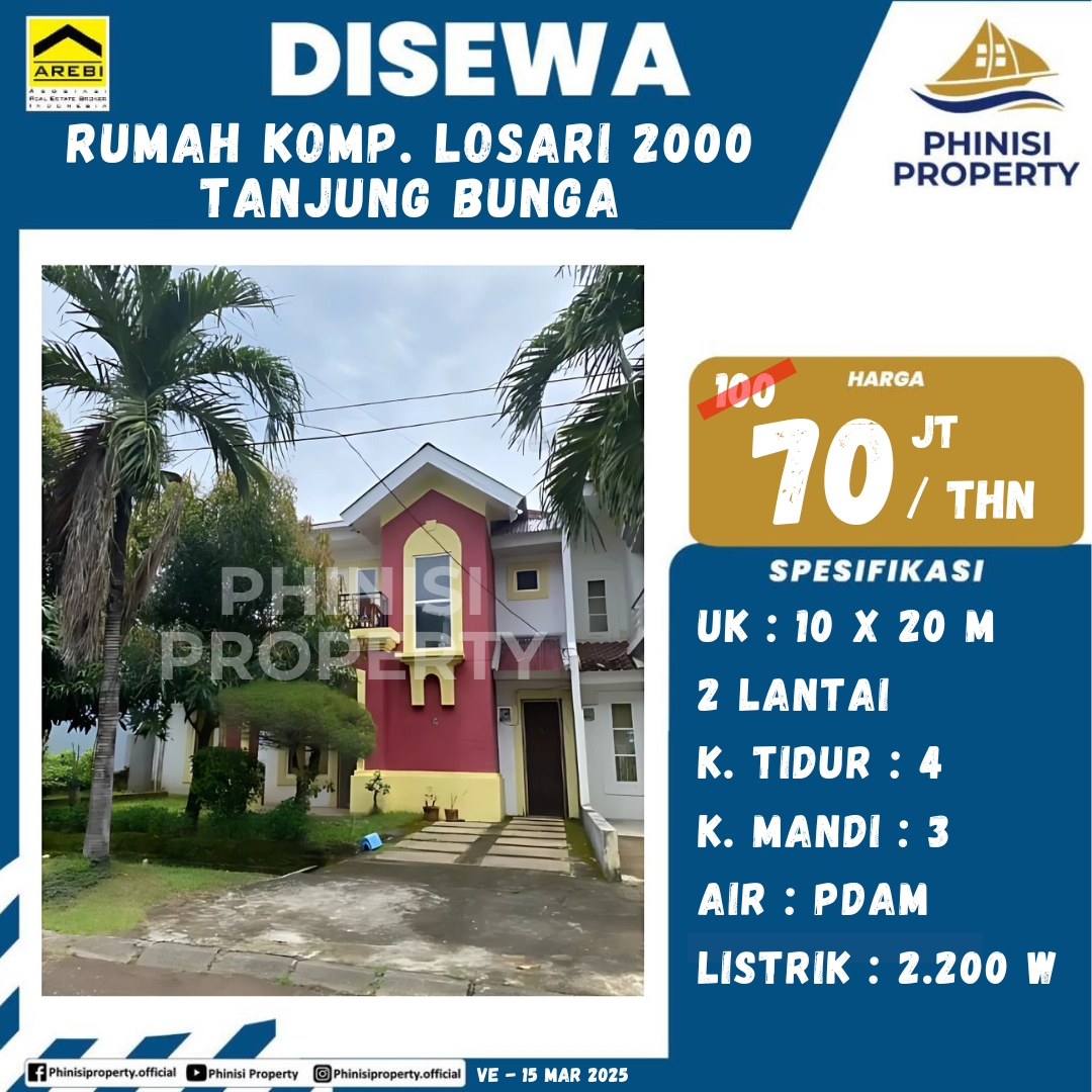 Disewakan Rumah 2 Lantai di Kompleks Losari 2000, Tanjung Bunga – Hunian Nyaman di Kawasan Premium!