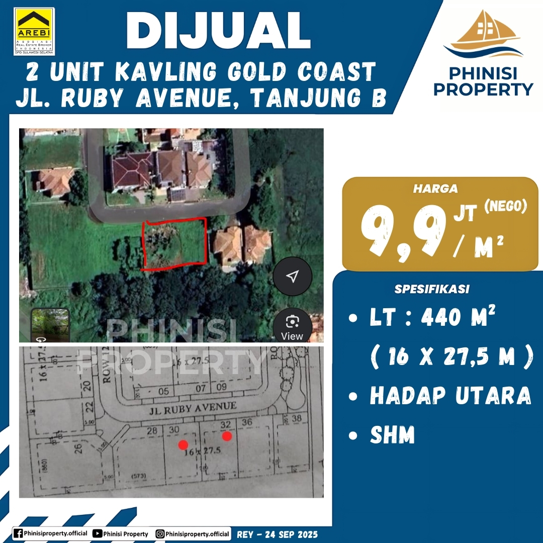Jual 2 Unit Kavling Gold Coast, Jl. Ruby Avenue, Tanjung Bunga