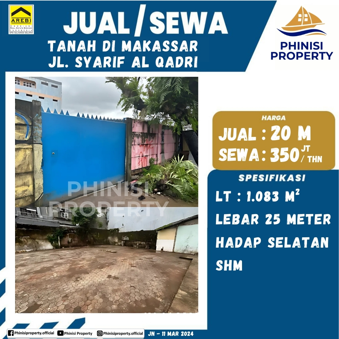 Tanah ini berlokasi strategis di Jalan Syarif Al Qadri, Makassar, dekat Gunung Batu Putih dan Bulu Kunyi dan tersedia untuk dijual maupun disewa, menawarkan fleksibilitas yang luar biasa. Properti ini memiliki luas tanah yang sangat luas, 1.083 m², dengan lebar 25 meter. Menghadap ke arah selatan, tanah ini ideal untuk berbagai jenis pengembangan, seperti gudang, ruko, atau properti komersial lainnya. Lokasinya yang mudah dijangkau dan ukurannya yang luas memberikan potensi bisnis yang menjanjikan bagi calon investor.