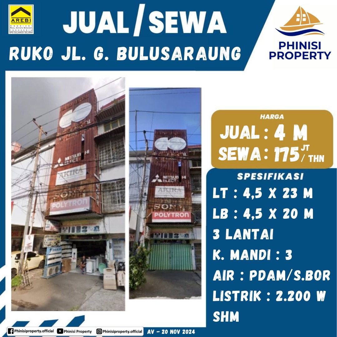 Jual Ruko Jl. Gunung Bulusaraung - Jalan Gunung Bulusaraung, Bontoala, Makassar, Sulawesi Selatan, Sulawesi, 90153, Indonesia