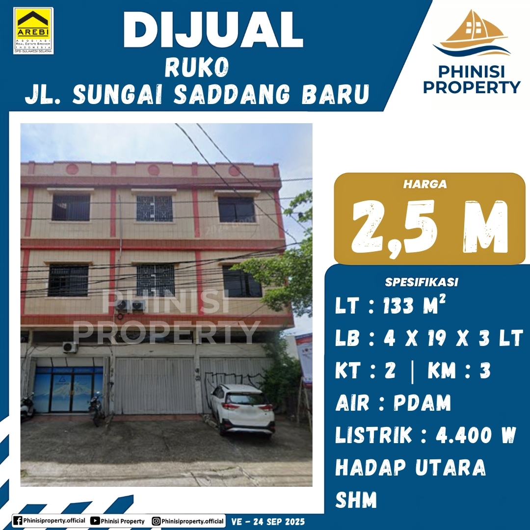 Jual Ruko 3 Lantai di Jl. Sungai Saddang Baru