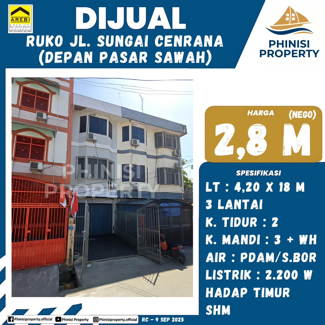 Jual Ruko Jalan Sungai Cenrana Depan Pasar Sawah
