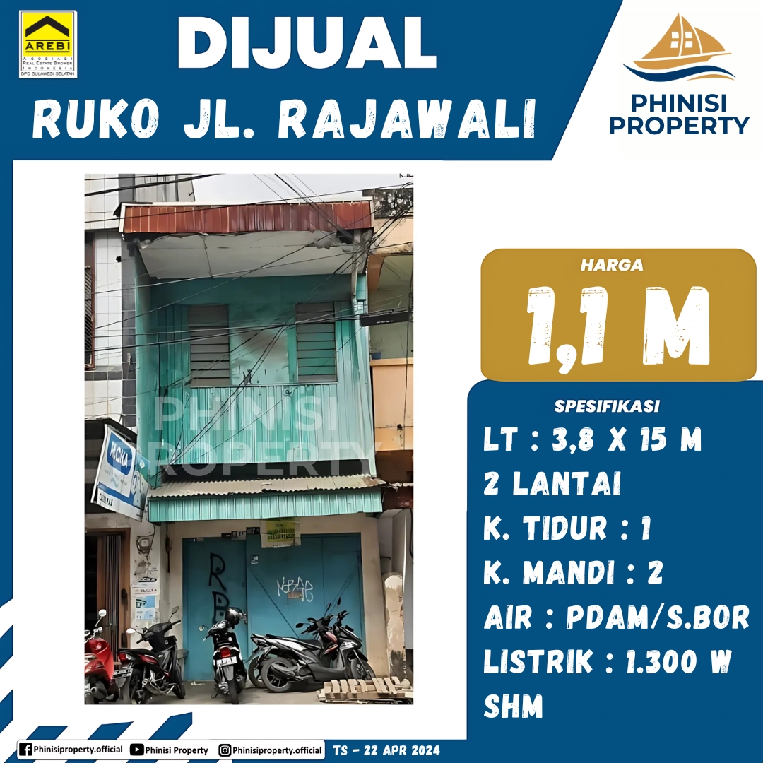 Dijual segera, ruko 2 lantai di Jalan Rajawali, lokasi yang sangat strategis untuk beragam jenis usaha. Properti ini memiliki luas tanah 57 m² (3,8 meter x 15 meter) yang ideal untuk bisnis. Dengan 1 kamar tidur dan 2 kamar mandi, ruko ini sudah dilengkapi dengan fasilitas PDAM/sumur bor dan daya listrik 1.300 watt. Status kepemilikan sudah SHM (Sertifikat Hak Milik), menjamin kepastian legalitas. Jangan lewatkan peluang untuk memiliki aset properti di lokasi vital ini.